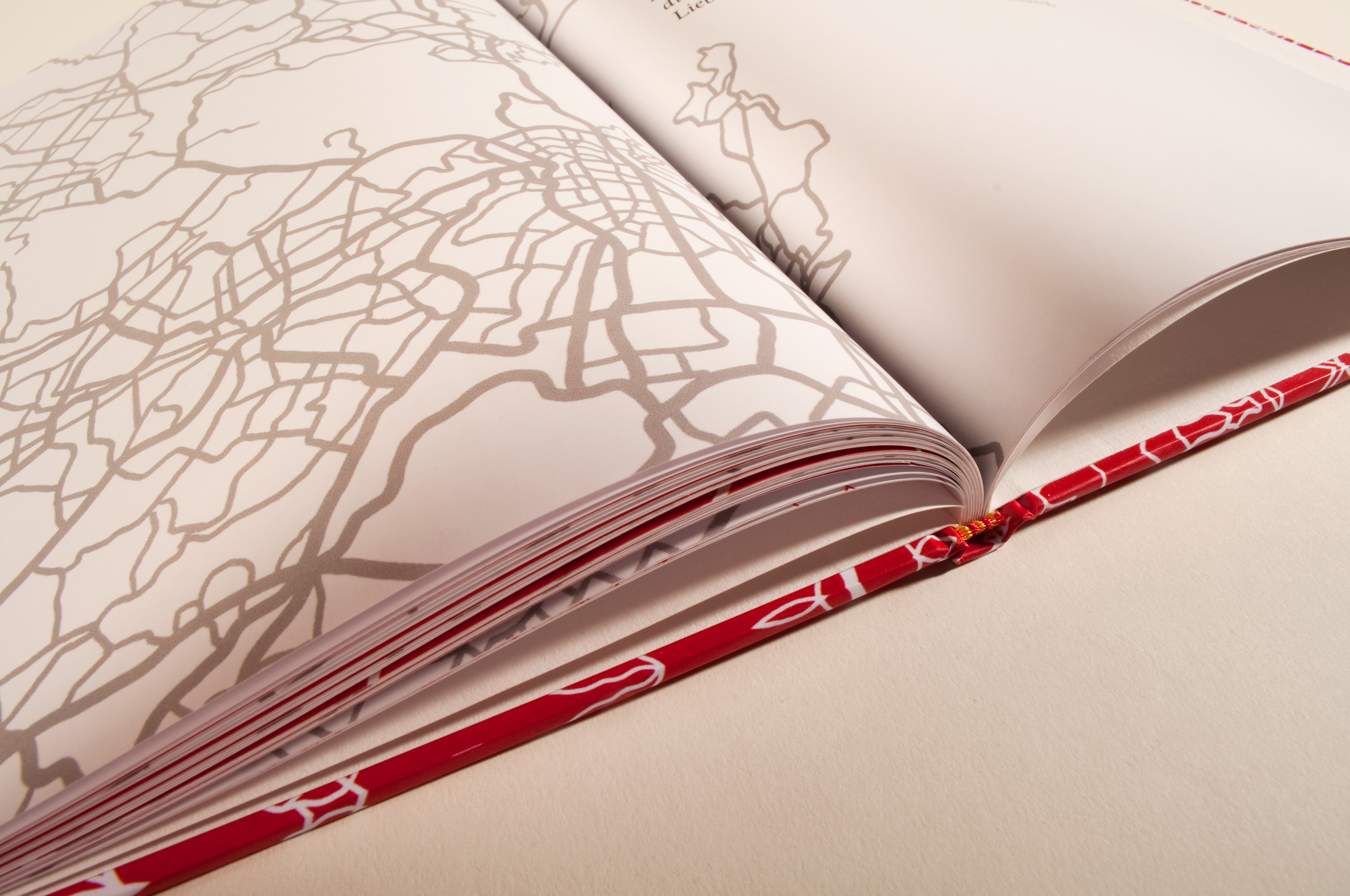 Straßenstrukturen aus unterschiedlichen Kulturkreisen wurden in dieser 72-seitigen Projektarbeit nach grafischen und kulutrellen Aspekten analysiert und in neue, interessante Zusammenhänge gebracht. Der Leser soll dabei nicht nur einen grafischen Eindruck der Straßennetze einer Stadt erhalten sondern auch den Blick auf die Einzigartigkeit der verzweigten Straßen lenken. Die »Eröffnung« zu jeder Stadt macht ein belletristischer Text, der möglichst gut die dortige Atmosphäre einfängt. Daneben steht ihr Name in Lautschrift, denn wenn man eine fremde Stadt besucht, macht die einheimische Sprache den Großteil des allerersten Eindrucks aus. Auf der nächsten Doppelseite zeigt sich zunächst nur ein Ausschnitt des Straßennetzes, um einen Vorgeschmack zu geben. Danach folgt der vollständige Stadtplan. Dazu wurde jedes Netz nach grafischen und teilweise kulturellen Aspekten analysiert, die Straßendichte und -größe untersucht und ein Vergleich mit einer anderen Art Netz gefunden. Abschließend folgt eine Doppelseite, auf der die Netzstruktur grafisch mit Wörten nachempfunden ist. Dabei hadelt es sich um passende beschreibende Adjektive. Die Städte sind im Buch nach aufsteigender Dichte sortiert. So ist Kairo als leichtestes und weitmaschigstes Netz das Erste, währed das verworrene Paris den Abschluss bildet. ––––– The graphical and cultural structures of streets from different countries had been analyzed and set into a context within this 72-page book. The reader should not only get a graphical insight, but also see the uniqueness of the street structures in different societies. The opening to each city structure is a text from a book, which describes the atmosphere and feeling of the following city. You can also find the city name in phonetic spelling, because when visiting a foreign city, the language is one of the first things you notice. On the next pages, you can find the graphical map with different street shapes, lengths and width. They are also compared to a physical type of net and analyzed by the meaning of the street structures with reference to the people that live there. The streets are also given characteristics and are sorted from the lightest structure (Kairo) to the tightest and labyrinthine (Paris).