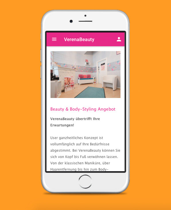 Für die Kunden des Beauty-Studios VerenaBeauty sollte die Benutzbarkeit des Terminbuchungssystems erleichtert und intuitiver gestaltet werden, und zudem die Kundenbindung mit Hilfe einer Studio-eigenen Web-App verstärkt werden. In der App kommt das flexible und individuell gestaltete Buchungstool "Shedul" zum Einsatz. Ebenso lassen sich: Terminanfragen versenden, alle News auf einen Blick lesen, eine Galerie der Arbeiten betrachen, der Shop erkunden, Feedback geben, Gutscheine mit Montasspecials einlösen, Stempelkarten füllen, Kontaktdaten/Anfahrt sowie Öffnungszeiten einsehen. Der Stil wurde an die bereits bestehende Website angepasst und der Styleguide entsprechend adaptiert. Bereits kurz nach dem Launch des Buchungstools und der App gab es die ersten positiven Resonanzen. ––––– For the clients of the beauty studio VerenaBeauty, a more user friendly and intuitive appointment booking system needed to be created, as well as a web app to increase customer loyalty. In the app the flexible and individually designed booking tool "shedul" was used. Further features: Send appointment requests, see all relevant news at once, browse gallery, discover the shop, give feedback, get monthly vouchers, collect discounts on services, see contact data / map and opening hours. The style was adapted to the existing website. Shortly after the launch of the booking tool and app there was a lot of positive feedback.